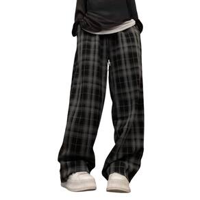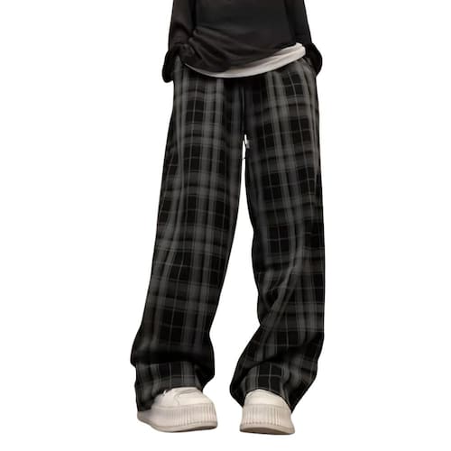 Calças GGOOB Grunge Lounge — roupas vintage góticas emo — calças xadrez (cinza, GG, GG)