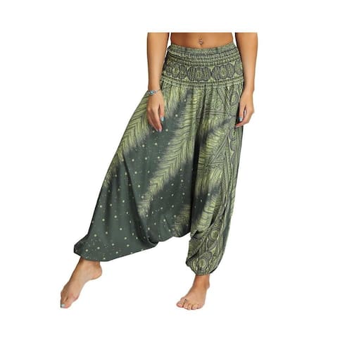 Eleve seu guarda-roupa com nossas calças de harém femininas boêmias, uma mistura de estilo e conforto. Essas calças oferecem um ajuste solto e uma silhueta fluida. A cintura alta elástica garante um ótimo ajuste para pessoas pequenas e grandes.