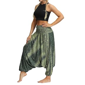 Se você preferir como calça de harém ou macacão, essas calças versáteis são adequadas para várias ocasiões, incluindo viagens, ioga, festivais, roupas casuais e até mesmo como trajes de casamento não convencionais. A cintura elástica e as tiras no tornozelo proporcionam um ajuste confortável e descontraído, tornando-as ideais para combinar com calças de cintura alta.
