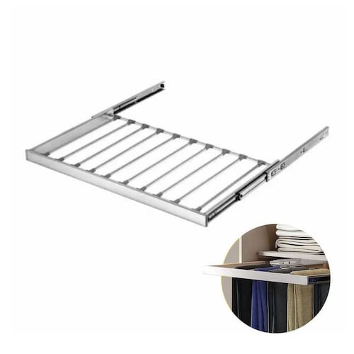 Calceiro Deslizante 700mm FGVTN O Calceiro Deslizante 700mm FGVTN é um acessório que além de deixar seu guarda roupa mais pratico tambem facilita a organização das suas peças. Item indispensável para quem deseja deixar o ambiente mais sofisticado e moderno. Possui uma excelente estrutura em aço carbono apresentando assim ótima durabilidade. O produto acompanha as corrediças telescópicas para que o Calceiro tenha um deslizamento suave ao realizar o movimento de abrir e fechar. Características: - Modelo: CD135 - Cor: Aluminio Fosco -Capacidade: 09 Varetas - Marca: FGVTN Dimensões: - Largura: 70cm - Altura 4cm - Profundidade: 46,5cm