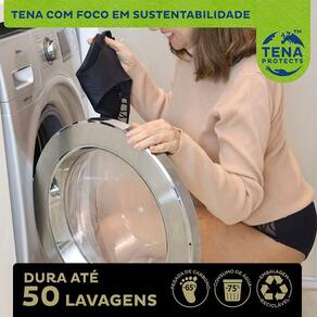 TENA Calcinha Lavável foi desenhada para mulheres com incontinência urinária leve que procuram mais conforto e discrição. É um produto feminino, tecnológico e sustentável.