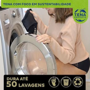 TENA Calcinha Lavável foi desenhada para mulheres com incontinência urinária leve que procuram mais conforto e discrição. É um produto feminino, tecnológico e sustentável.