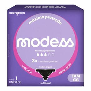 - Conteúdo da embalagem: 1 Calcinha Absorvente Reutilizável Modess