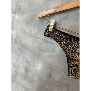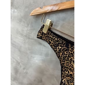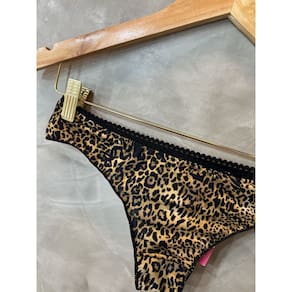 Calcinha fio dental em onça com detalhe em renda sem costura. Para as apaixonadas por detalhes a renda macia no cós e nas cavas das pernas traz um toque delicado e deixa esta peça com um diferencial incrível. O flower sofisiticado alia conforto em uma só proposta!