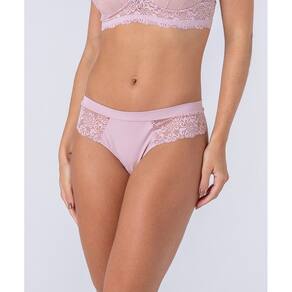 Calcinha fio dental de renda e microfibra, com cós duplo e detalhe no bumbum - Rosa Claro - GG