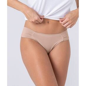 Calcinha fio dental duplo em algodão, lisa, com laterais drapeadas - M - Bege