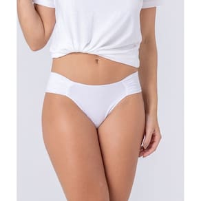 Calcinha fio dental duplo em algodão, lisa, com laterais drapeadas - G - Branco