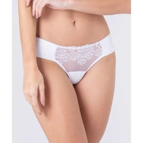 A calcinha fio dental duplo ganha laterais larguinhas, que garantem o conforto e não enrolam no corpo. A parte da frente em renda é o destaque da lingerie, enquanto a modelagem na parte de trás valoriza o bumbum. O forro 100% de algodão com proteção permanente impede a proliferação de fungos e bactérias, garantindo mais saúde para a mulher. Os elásticos em microfibra não marcam na roupa e completam o conforto da peça.