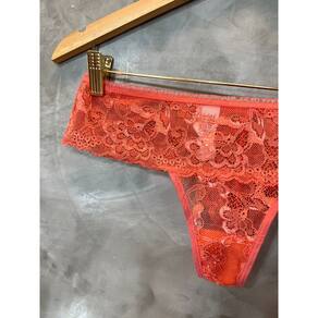 Calcinha Fio dental em tule laranja , sexy e sensual, romantica com lateral larga em renda - Roxo - GG