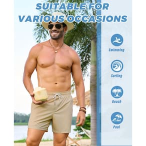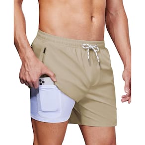 - ?Forro de compressão 2 em 1? Os calções de banho apresentam um forro de compressão 2 em 1 que proporciona elasticidade às coxas e não gruda na pele quando molhado como um forro de malha. O forro elástico tem muita malha para ajudar a drenar o suor rapidamente. O ajuste de 12,7 cm é longo o suficiente para cobrir os bolsos, mas curto o suficiente para permitir o movimento da coxa, dando a você uma elasticidade muito completa durante o treino. É elástico, respirável, secagem rápida e mais confortável do que shorts normais.