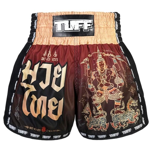 Shorts TUFF Muay Thai: Os shorts de corte clássico são inspirados na era dourada do Muay Thai nos anos 80. A cintura baixa e o corte curto com fendas nas pernas nas aberturas dos dois lados para maximizar a amplitude de movimento.