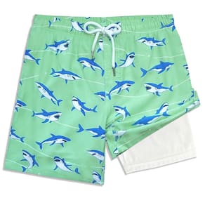 LUCOWEE Calção de banho para meninos, forro de compressão, macio, sem atrito, secagem rápida, leve, FPS 50+, maiô de qualidade, Baby Green Sharks