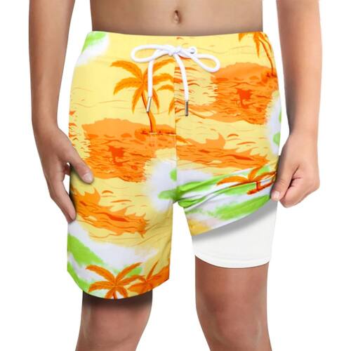 LUCOWEE Calção de banho para meninos, forro de compressão, macio, sem atrito, secagem rápida, leve, FPS 50+, maiô de qualidade, Orange Island - Tecido elástico de 4 vias reciclado: 90% poliéster reciclado, 10% elastano, material mais espesso. Shorts de natação de qualidade, leve, de alto desempenho e repelente de água para secagem rápida, recursos de absorção de umidade e acabamento FPS 50+ para proteger as crianças dos raios solares ultravioleta prejudiciais, um item essencial para a praia! - Forro de compressão confortável: elastano macio e macio para o forro boxer embutido. Considerando que seus filhos precisam dar um pouco no período de crescimento, o forro interno não é muito apertado. Este calção de banho permitirá que seus meninos aproveitem a praia, piscina sem queimaduras por atrito, se sintam confortáveis e com suporte. Também não é apenas um traje de banho, mas também uma boa peça para brincar, correr, treinar, treinar... - Cordão funcional e ilhós de metal – Estes trajes de banho para meninos têm cordão real em toda a cintura que pode ser apertado. A cintura elástica oferece um ótimo ajuste pessoal mesmo para meninos magras ou roucas, também ajudam a proteger firmemente ao realizar atividades rigorosas. Tamanhos de crianças de 3 a 16 crianças, 18 a 20 anos para jovens, homens jovens, PP. - Tamanho regular para meninos: tamanho normal dos EUA, leia a imagem da tabela de tamanhos. Se o seu filho for magro ou médio, compre o tamanho da sua cintura. Então, se ele for um tamanho robusto, compare sua cintura com o peso e escolha um tamanho maior na tabela. Como mãe de 2 meninos, aconselho que você escolha um tamanho maior se seus filhos estiverem entre 2 tamanhos, os meninos crescem tão rápido na adolescência! - Mais bônus que você recebe – 3 bolsos: bolsos laterais profundos reforçados com forro de malha perfurada para drenagem eficiente, bolso traseiro seguro com aba de fecho aderente para guardar objetos de valor também com ilhós de drenagem. Estampas e estampas exclusivas, você terá um par de calção destinado a ser sempre confiável durante todo o verão ensolarado. Poucos dólares adicionados, dupla felicidade!