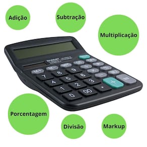 Calculadora de Balcão e Caixa de Mercado 12 Dígitos Funciona a Pilha Para Agilizar Seu Trabalho e Diminuir Erros A calculadora é uma ferramenta que aumenta sua produtividade e precisão no trabalho facilitando os cálculos e diminuindo a chance de erro humano. Ela é indicada para lugares como caixas de supermercado, balcões e escritórios. Marca: Azs