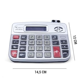 - dimensões: 15 cm x 13 cm x 3,5cm - peso: 165g - display com 8 dígitos - funções aritméticas básicas - tecla para desligamento - utiliza 1 pilha aa - composição: plástico Marca: Não Informado Ean: 7890635719742