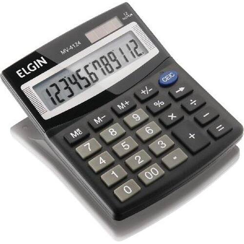 Descri??o: Calculadora de mesa com 12 d?gitos; Visor: Cristal l?quido; Fun??es: Porcentagem, raiz quadrada, mem?ria, Invers?o de sinais; Desligamento autom?tico ou tecla OFF; Alimenta??o: Solar ou bateria G-10; Dimens?o: 128 x 143 x 26 mm.