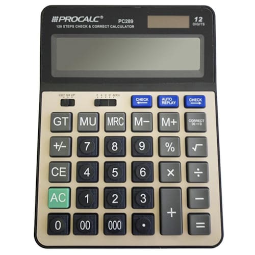 Calculadora de mesa Procalc conta com design moderno e ergonômico além de possuir uma cor incrível que dá mais charme e beleza ao produto. - Calculadora de 12 dígitos - Teclas 00 e 000 - Alimentação: Solar ou 1 Pilha AAA - Dimensões: 15,5x21x3,5 cm - Peso aprximado: 0,308 Kg - Referência: PC289 Ean: 4891454289419