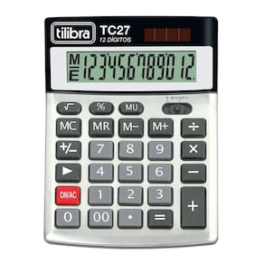 A calculadora de mesa tc27 tem formato de 137x103mm e visor inclinado, também tem fonte de energia dual, garantindo que esteja sempre pronta para uso. A calculadora de mesa possui funções para cálculo de raízes quadradas, alteração do sinal do número exibido +/- e seletor de arredondamento, permitindo o controle da precisão dos resultados. Alta qualidade auto desligamento cor: prata dígitos: 12 fonte de energia: dual : 3 anos maior durabilidade modelo: mesa operações: cálculos básicos resistente teclas plásticas visor inclinado formato: 137mm x 89mm atenção: imagem meramente ilustrativa. Pode ocorrer mudanças no tom da cor para o produto real ou mudanças na embalagem sem aviso prévio por parte do fornecedor/fabricante. Marca: Não Informado