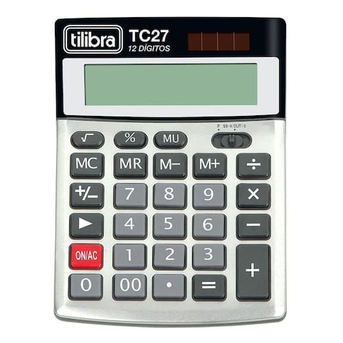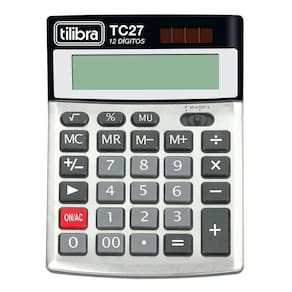 A calculadora de mesa tc27 tem formato de 137x103mm e visor inclinado, também tem fonte de energia dual, garantindo que esteja sempre pronta para uso. A calculadora de mesa possui funções para cálculo de raízes quadradas, alteração do sinal do número exibido +/- e seletor de arredondamento, permitindo o controle da precisão dos resultados. Alta qualidade auto desligamento cor: prata dígitos: 12 fonte de energia: dual : 3 anos maior durabilidade modelo: mesa operações: cálculos básicos resistente teclas plásticas visor inclinado formato: 137mm x 89mm atenção: imagem meramente ilustrativa. Pode ocorrer mudanças no tom da cor para o produto real ou mudanças na embalagem sem aviso prévio por parte do fornecedor/fabricante. Marca: Não Informado