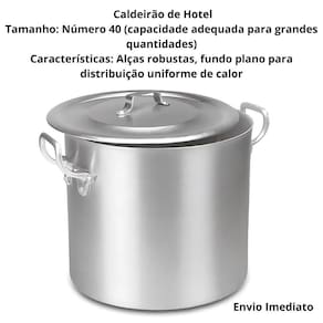 Caldeirão 30 Panela Alumínio Linha Cozinha Industrial Restaurantes Caldeirão 30 - Panela de Alumínio - Linha Cozinha Industrial Ideal para uso intenso em cozinhas profissionais, o Caldeirão 30 oferece alta performance e durabilidade para restaurantes, lanchonetes e cozinhas industriais. Confira suas principais características: Capacidade Generosa - Perfeito para grandes volumes, ideal para caldos, sopas e cozimentos em larga escala. Alumínio de Alta Qualidade - Fabricado em alumínio reforçado, garante aquecimento rápido e uniforme. Alta Resistência - Projetado para suportar o uso contínuo e temperaturas elevadas. Alças Reforçadas - Segurança e firmeza no manuseio, mesmo com o caldeirão cheio. Acabamento - Visual limpo e polido, fácil de higienizar. Compatível com Fogões Industriais - Ideal para todos os tipos de cocção . Versatilidade na Cozinha - Indicado para preparo de diversos pratos, de caldos a feijoadas. Marca: Não Informado