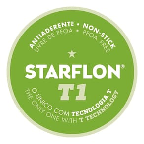 Revestimento interno e externo de antiaderente Starflon Max que não gruda, é fácil de limpar, mais durável e não é prejudicial à saúde.