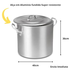 Item na Compra : 1un Caldeirão Industrial Alumínio Nº40 Hotel com tampa 40 Medidas (Aproximadas):- Altura: 36 cm- Diâmetro: 40 cm- Espessura: 3 mm- Capacidade: 40 Litros