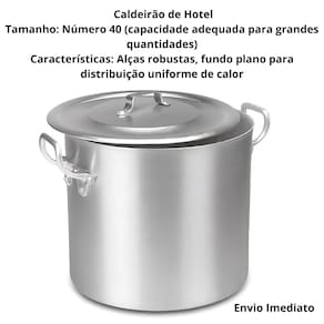 Descrição do Caldeirão Industrial Alumínio Nº40 Hotel Versatilidade Profissional: O caldeirão industrial de alumínio número 40 é a escolha ideal para cozinhas de hotéis e estabelecimentos comerciais que exigem alto desempenho e capacidade generosa de preparação de alimentos.