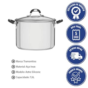- Não tem como não ficar com água na boca depois de utilizar o Caldeirão Tramontina Astro Silicone em Aço Inox com Fundo Triplo com Tampa de Vidro 24 cm 7,2 L.