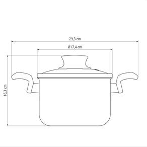 Corpo de alumínio com espessura de 1,8 mm que proporciona cozimento rápido e uniforme. Revestimento interno e externo de antiaderente Starflon Max que não gruda, é fácil de limpar, mais durável e não é prejudicial à saúde, pois é livre de PFOA. Tampa de vidro temperado, com saída de vapor e borda de aço inox. Alças de baquelite antitérmico e pegador de nylon que oferecem segurança durante o manuseio. Pode ir à máquina de lavar louças facilitando seu dia a dia.