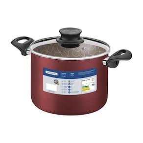 Caldeirão Tramontina Paris em Alumínio com Revestimento Interno e Externo em Antiaderente Starflon Max Vermelho com Tampa de Vidro 24 cm 7,1 L