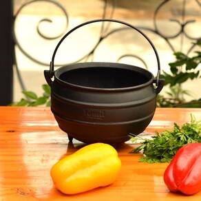 Caldeirão Tripé Ferro Com Arco Panela Mineira 13x10,5cm 1L O Caldeirão Tripé Com Arco da Panela Mineira é o tradicional caldeirão de ferro, em um estilo retrô que remonta o design de caçarolas e tachos antigas. Possui uma base e fundo arredondado, além de 03 pezinhos como apoio. Sua perfeita distribuição e retenção do calor promove uma cocção prolongada que enaltece o sabor e aroma dos alimentos. Pode ser utilizado para preparar diversas receitas, como caldos, tropeiros, carreteiros, carnes, copas, polentas, peixes, entre outros. Muito utilizada em evento pela sua apresentação e por manter-se quente por muito mais tempo. Onde Usar: Pode ser utilizado em fogões a gás, a lenha, elétricos, vitro-cerâmicos, fornos, grills, churrasqueiras e fogo de chão. Não é indicado para fogões cooktops de indução. Orientação de Uso e Conservação:Antes do primeiro uso: Lave com água e sabão, seque bem com um pano e leve ao fogo para remover toda a umidade. Já vem pronta para uso, então não precisa ser curada. Guarde em um local seco. Após cada uso: Lave com água e sabão, usando uma esponja ou escova para remover todos os resíduos de alimentos. Se restarem resíduos, ferva água com um pouco de detergente para soltá-los. Pintura: Revestimento atóxico que garante durabilidade e proteção prolongada, sem causar nenhum dano à saúde. Características Técnicas e Medidas:Material: Ferro Fundido.Modelo: Redondo.Diâmetro: 13cm.Linha: Artesanal.Altura: 10,5cm.Peso: 1,44Kg.Litragem: 1L.Alças: Ferro.Com Arco. Itens Inclusos:01 Caldeirão Tripé Ferro Com Arco Panela Mineira 13x10,5cm 1L. Código: 29PMProdutoLojaPlast.