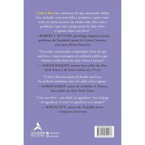 “Divertido, esclarecedor e inspirador! Mais do que um livro, é uma mensagem de utilidade pública que faríamos todos bem em calar a boca e escutar! — Sarah Knight, autora best-seller do New York Times e do livro Calma Aí, P*rra! “ Cale a Boca me convenceu de que, mantendo minha boca fechada, serei mais feliz e produtivo, assim como todas as outras pessoas em minha vida. Meu único problema é que não consigo parar de falar sobre o quanto adoro este livro!” — Robert I. Sutton, psicólogo organizacional, professor de Stanford e autor de Como Conviver com meu Idiota Favorito “O livro abre sua mente fechando sua boca. Eu poderia continuar, mas vou calar a boca agora.” — Aaron James, autor de Assholes: A Theory, best-seller do New York Times “Leia este livro – seu chefe vai agradecer. Seu cônjuge vai agradecer. E você vai agradecer a si mesmo!” — Kim Scott, autora de Trabalho Justo e Empatia Assertiva