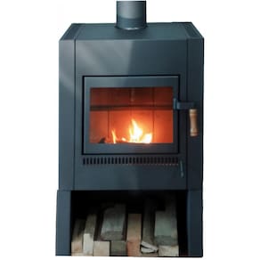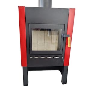 Volume de aquecimento: 150m3 Peso aproximado: 50 Kg Diâmetro de saída: 150mm Espessura média das chapas: 2.65mm Porta com vidro cerâmico Tijolos refratários