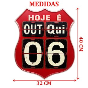 1 Calendário Decorativo Flip Retrô Vermelho De 40cm;