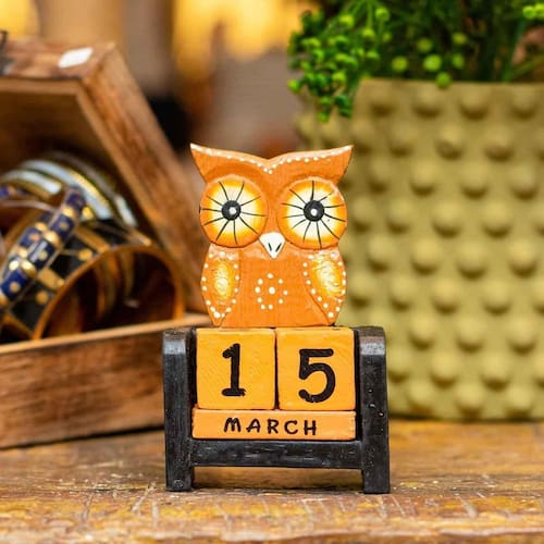 Calendário Coruja Marrom de Madeira Balsa de Bali Calendário Coruja Marrom de Madeira Balsa de Bali A coruja é a ave soberana da noite e para muitos povos elas simbolizam o mistério, a inteligência, a sabedoria e o conhecimento. Simboliza também a reflexao e o conhecimento intuitivo. Nosso calendário de coruja é perfeito para decorar o seu ambiente. É feito de madeira balsa e possui 5 blocos, sendo 2 com números e 3 com os meses do ano. Adquira o seu calendário e deixe a sua casa ou escritório mais bonito. Material: madeira balsa Cor Predominante: Marrom Claro e Escuro Peso: aproximadamente 50g Largura: 7,5cm Altura: 10cm Profundidade: 4cm Origem: bali O produto é artesanal, fabricado e de Bali e por isso pode apresentar pequenas variações de cor, tonalidade, brilho, peso e tamanho. Não deixe a sua peça em contato prolongado com a água, a não ser que seja peça que possa ser exposta ao sol e chuva. As fotos são ilustrativas. Qualquer produto adicional utilizado na composição das fotos deve ser comprado separadamente. Marca: Não Informado Ean: 7893380279691