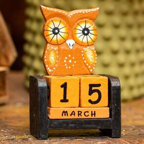 Calendário Coruja Marrom de Madeira Balsa de Bali Calendário Coruja Marrom de Madeira Balsa de Bali A coruja é a ave soberana da noite e para muitos povos elas simbolizam o mistério, a inteligência, a sabedoria e o conhecimento. Simboliza também a reflexao e o conhecimento intuitivo. Nosso calendário de coruja é perfeito para decorar o seu ambiente. É feito de madeira balsa e possui 5 blocos, sendo 2 com números e 3 com os meses do ano. Adquira o seu calendário e deixe a sua casa ou escritório mais bonito. Material: madeira balsa Cor Predominante: Marrom Claro e Escuro Peso: aproximadamente 50g Largura: 7,5cm Altura: 10cm Profundidade: 4cm Origem: bali O produto é artesanal, fabricado e de Bali e por isso pode apresentar pequenas variações de cor, tonalidade, brilho, peso e tamanho. Não deixe a sua peça em contato prolongado com a água, a não ser que seja peça que possa ser exposta ao sol e chuva. As fotos são ilustrativas. Qualquer produto adicional utilizado na composição das fotos deve ser comprado separadamente. Marca: Não Informado Ean: 7891535385778