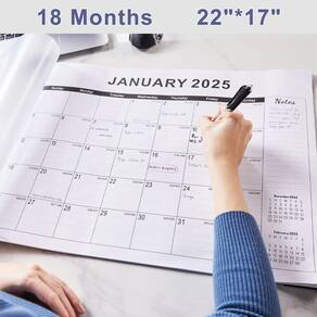 Mantenha-se organizado sem esforço e acompanhe sua agenda com este grande calendário de mesa. Abrangendo 18 meses, de janeiro de 2025 a junho de 2026, este calendário de mesa de 56 x 43 cm oferece amplo espaço para anotar compromissos, prazos e lembretes. O layout espaçoso apresenta datas claramente marcadas, dias da semana e cabeçalhos de mês/ano para facilitar a referência. Os calendários dos meses anteriores e futuros são convenientemente impressos em cada página para um planejamento perfeito. Com seu tamanho generoso e design prático, este calendário é uma ferramenta essencial para profissionais ocupados, estudantes ou qualquer pessoa que queira otimizar sua rotina diária. Mantenha-o na sua mesa ou monte-o na parede para melhor visibilidade e acessibilidade. - Cobertura abrangente: este calendário de mesa de 18 meses abrange de janeiro de 2025 a junho de 2026, oferecendo amplo espaço para planejar e organizar sua agenda. - Layout espaçoso: medindo 56 cm por 43 cm, o bloco de mesa grande oferece uma área de escrita generosa para compromissos, anotações e lembretes. - Design conveniente: o calendário apresenta spreads mensais, facilitando a visualização e o gerenciamento de seus compromissos rapidamente. - Detalhes práticos: cada mês inclui calendários de referência do mês anterior e seguinte, bem como espaço designado para anotações e datas importantes. - Estrutura durável: com um suporte resistente e materiais de qualidade, este calendário é construído para suportar o uso diário durante todo o período de 18 meses.