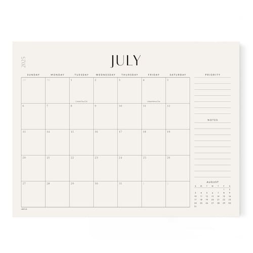 - PAPEL PREMIUM E FÁCIL DE USAR: Impresso em papel grosso e premium para evitar a passagem de tinta, este calendário de mesa de julho de 2025 a 2026 oferece uma superfície de escrita lisa.