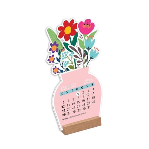 Calendario de mesa Vasinho Flores 2025 Fina Ideia Calendário de mesa em formato de vasinho, muito fofo Todos os meses do ano com arranjos de flores diferentes. Um mimo, perfeito para presentear e surpreender Formato 10cm x 19cm, 6 folhas meses do ano impressos em frente e verso em papel cartão 350 g/m2 e base em madeira. Embalagem em caixa de papel kraft e tampa em acetato transparente, fechamento com tag adesiva com linda mensagem. Marca: Não Informado Ean: 7908335523542
