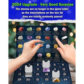 - Cristais de chakra e pedras curativas, contagem regressiva com magia de cristal: explore o mundo do alinhamento de chakras e da cura holística com nossas gemas cuidadosamente selecionadas. Nosso calendário do advento de 2024 traz 24 dias de encantamento, revelando um tesouro de pedras preciosas de cristal l que cativam crianças, iniciantes, adultos, espiritualistas e entusiastas da geologia.