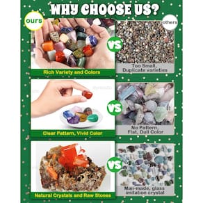 Abrace a magia da temporada de férias com nosso calendário do advento de pedras preciosas de cristal l de 2024. Pedras preciosas autênticas, gemas polidas e pedras ásperas: esta coleção de cristais e pedras do calendário do advento é deslumbrante! Ao desembrulhar cada joia, você não está apenas recebendo um lindo cristal; você está convidando a sabedoria e a energia da Terra para sua vida. Tradição natalina: faça com que a contagem regressiva para o Natal seja significativa e educativa. Compartilhe a alegria de aprender e a beleza dos cristais is com seus entes queridos por meio do calendário exclusivo do advento de 2024. Contagem regressiva para o Natal: torne esta temporada de férias inesquecível com nosso calendário de advento de pedras preciosas, calendário de advento de 2024 perfeito para crianças, meninas e meninos. Todos os dias, as crianças abrem uma nova porta para revelar a magia das pedras preciosas e cristais genuínos. Que presentes de Natal emocionantes para meninos e meninas de 4, 5, 6, 7, 8, 9, 10, 11, 12, 13 anos. Desbloqueie o poder dos presentes da natureza com nosso conjunto diversificado de pedras preciosas. Se você busca cura e equilíbrio, ou simplesmente aprecia as maravilhas do mundo l, nossos calendários do advento da coleção de pedras convidam você a experimentar a magia dentro de cada pedra.