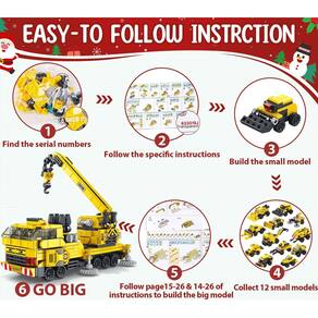 -2 Formas de conversão: 24 modelos de caminhões individuais têm 2 formas diferentes que promovem a criatividade e as habilidades STEM das crianças. - Fácil de montar: contém 2 detalhes na caixa de instruções de construção, ajudando seus filhos a montar o modelo completo, passo a passo.