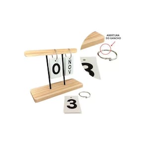 Calendário de Mesa Base de Madeira Permanente com Argolas Cartões Dia e Mês Decoração Escritório Home Office