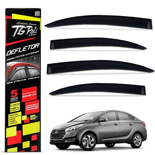 Defletor de chuva Tgpoli HB20 Sedan 2013 a 2019 Fumê Acrílico 4 Portas Inteiriça