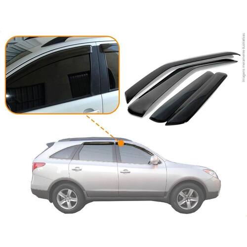 Calha de chuva ecoflex vera cruz 07/15 4 portas Com nossas calhas mesmo em dias chuvosos nos permitem de abrir as janelas de 4cm a 6cm dependendo do nível da chuva, e reduzindo os ruídos dos ventos quando a janela estiver aberta dando a possibilidade de ventilar o carro. Modelo: Calha de chuva 100% acrílico do hyundai vera cruz 2007 a 2015 4 portas. Especificação técnica: - 100% acrílico - modelo específico do veículo - tamanho padrão de fábrica - cor fumê - reduz ruídos do vento - permite abrir em média 4cm do vidro em dias chuvosos - possui sistema de fixação por fita 3m - acompanha 1 primer para limpeza Itens inclusos: - 1 conjunto de calha de chuva. - 1 primer para limpeza Dimensões Tamanho padrão conforme as especificações da montadora. Instalação A instalação é feita de forma simples, podendo ser feita por você mesmo. de 30 dias para defeitos de fabricação.