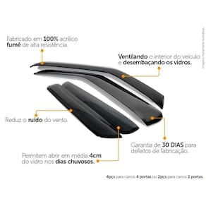 Com nossas calhas mesmo em dias chuvosos nos permitem de abrir as janelas de 4cm a 6cm dependendo do nível da chuva, e reduzindo os ruídos dos ventos quando a janela estiver aberta dando a possibilidade de ventilar o carro.