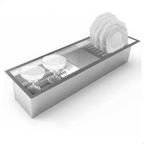 - Escorredor de louça embutido, fabricado 100% em aço inox 304 com acabamento alto brilho.