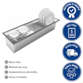 - Com 3 módulos inteligentes, ela organiza, escorre e valoriza sua bancada com o brilho e a durabilidade do inox 304.