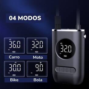Produto compacto e potente, indispensável para ter em casa ou no carro. O compressor é portátil e recarregável, tem uma bateria de 2000 mAh com vários modos predefinidos. Para carros, motocicletas, bicicletas e bolas.