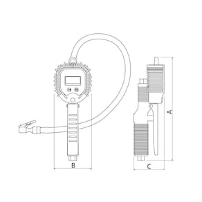 Corpo injetado em polímero de alta resistência.Empunhadura e proteção do painel digital em borracha.Faixa de pressão: 0-255 psi / 0-18 bar / 0-18 kg/cm / 0-1800 kPa Resolução: +/- 2 psiQuatro unidades de medida disponíveis: psi, bar, kPa e kg/cmDispositivo para despressurização.Visor com painel digital.Mangueira de 60 cm com bico inflador integrado.Inclui engate rápido 1/4 NPTCompatível com válvulas convencionais (tipo americano).